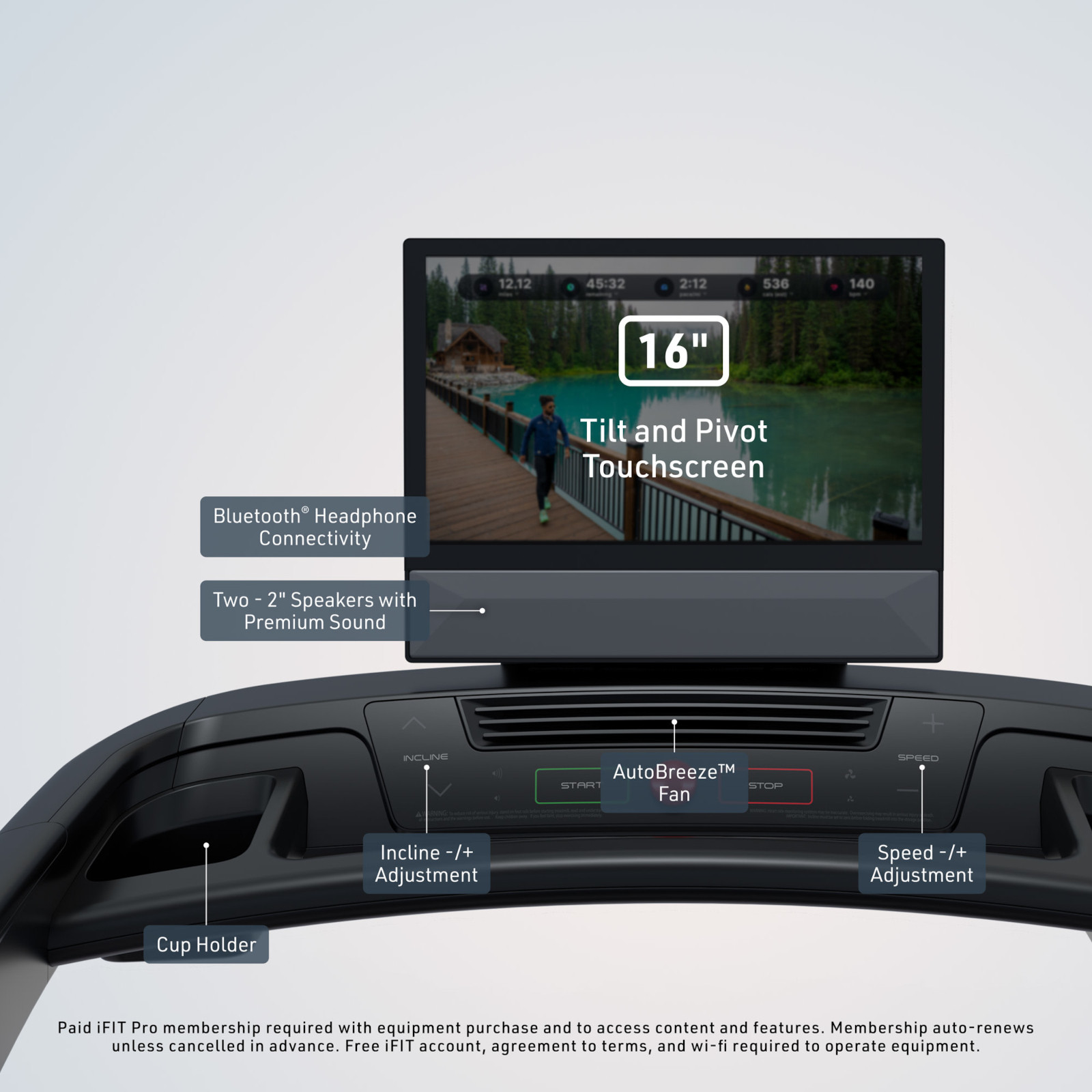 - Extras: www.ifit.com compatible, transport wheels, fan, foldable